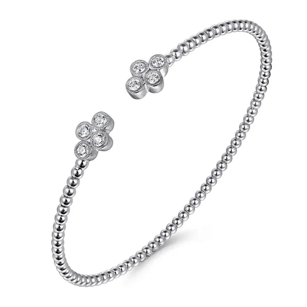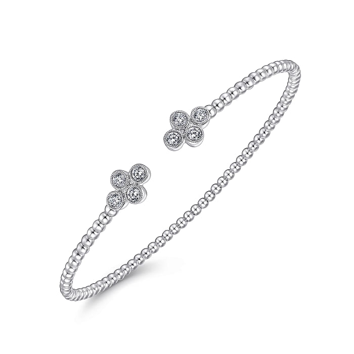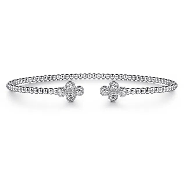 White Gold Bujukan Bead Split Cuff Bracelet with Quatrefoil Diamond Endcaps